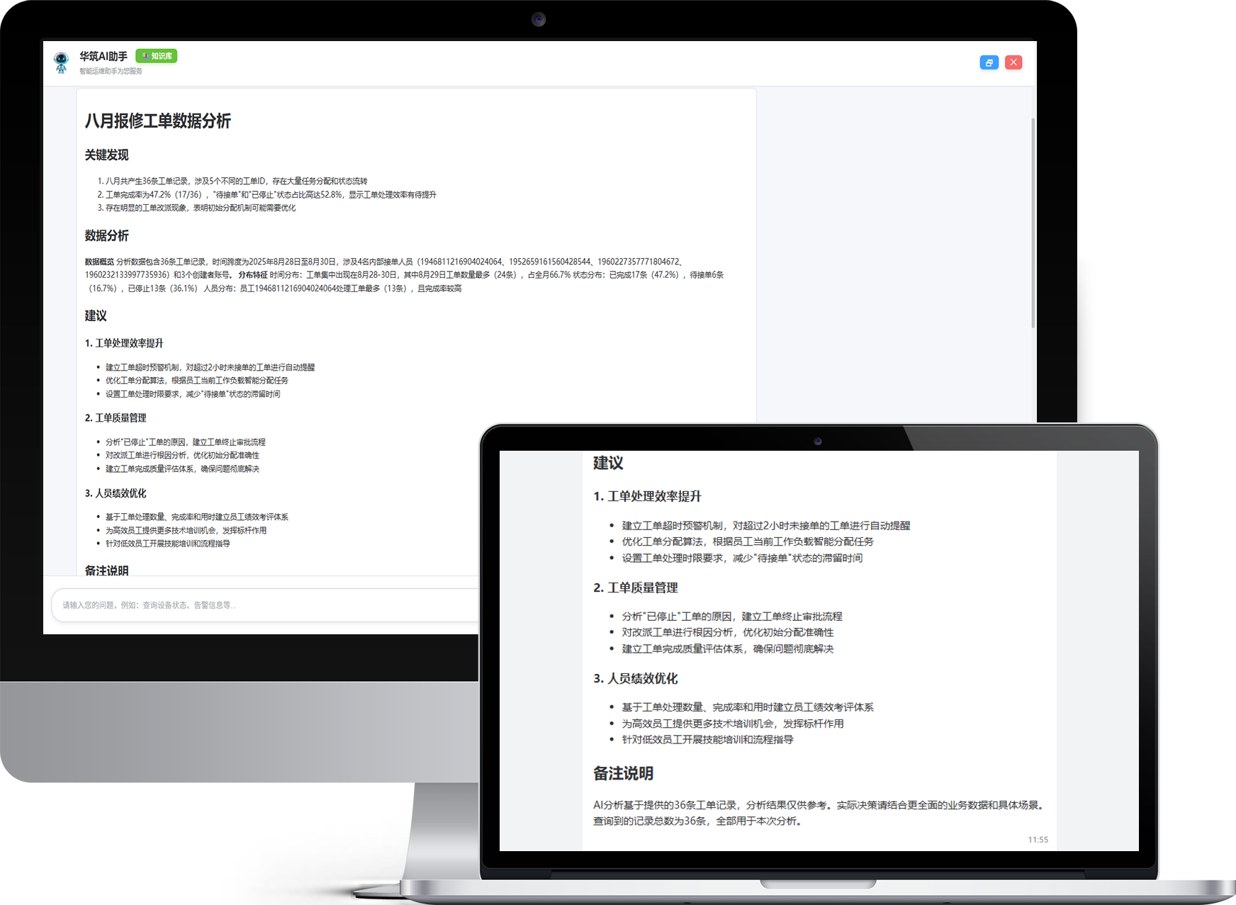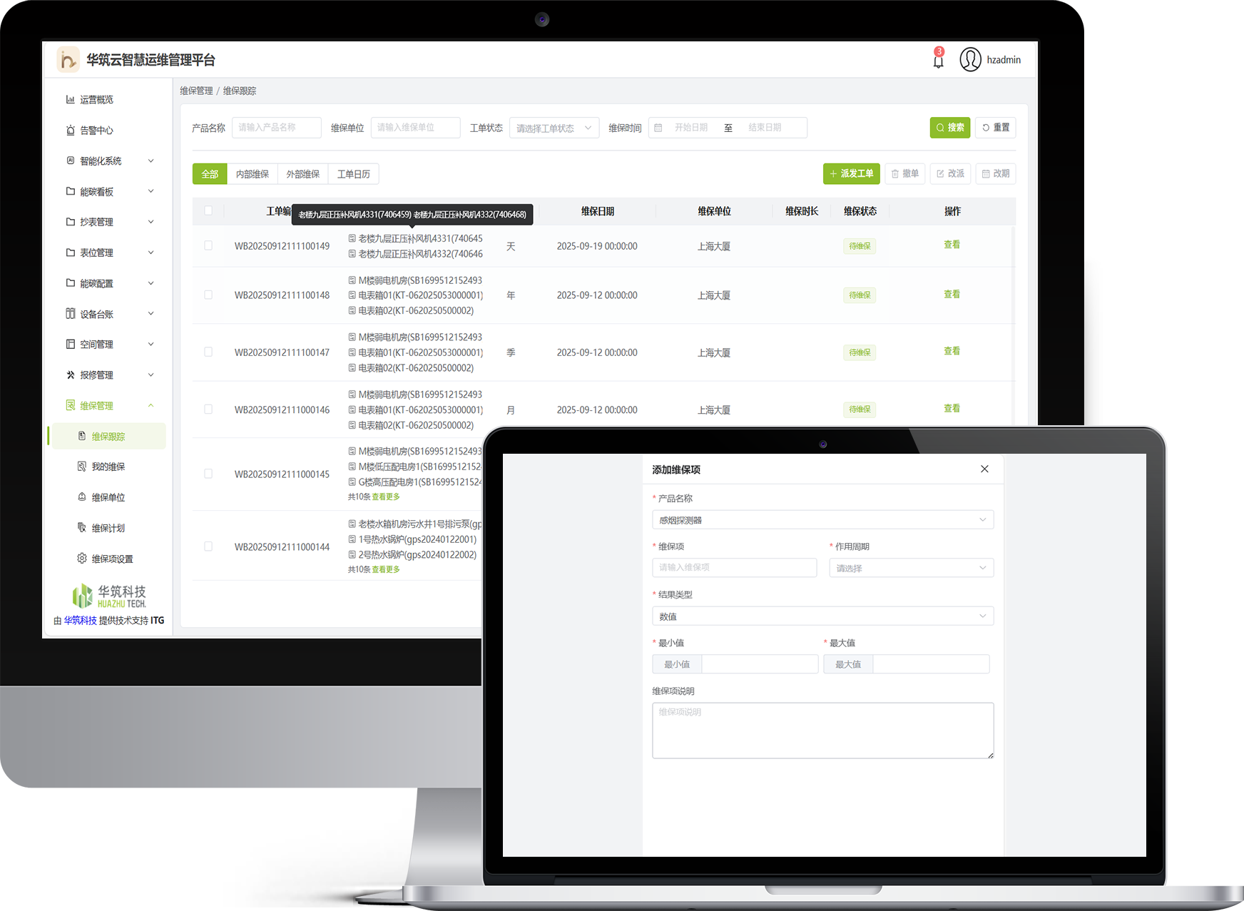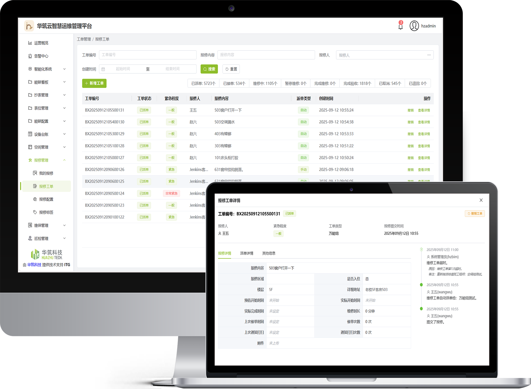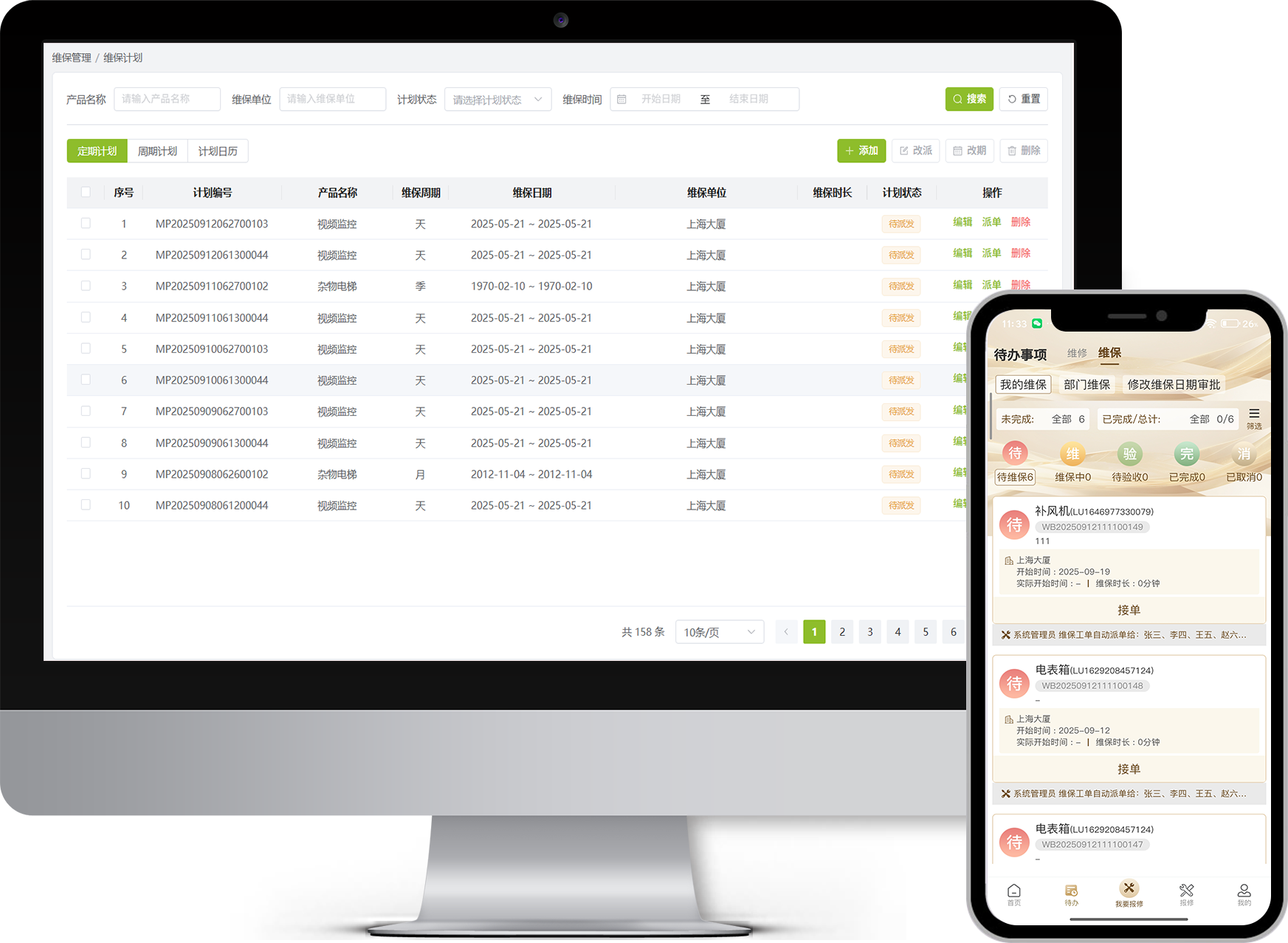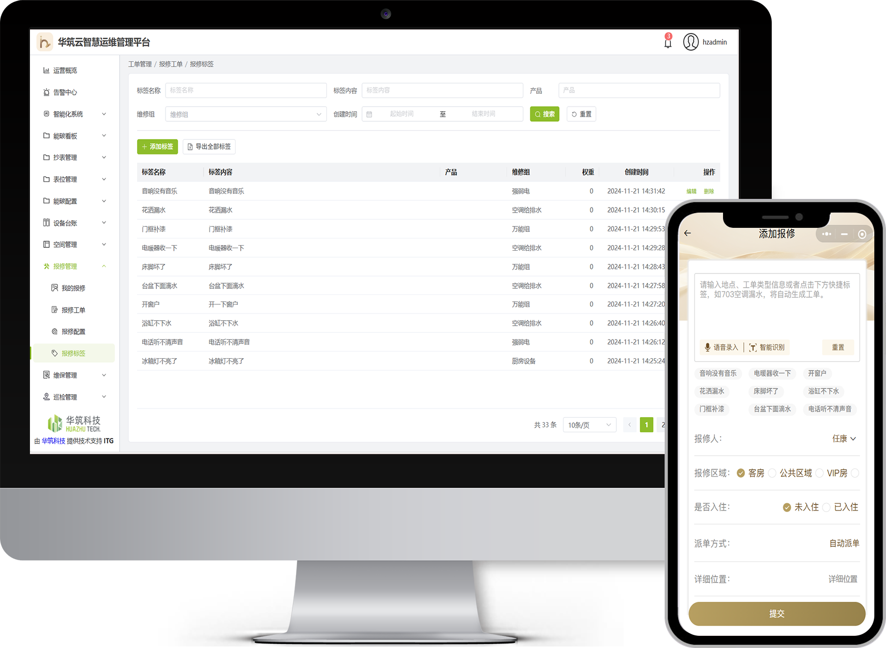 覆盖报修、处理、验收、返修的闭环流程;维保、巡检、设备档案一体化;