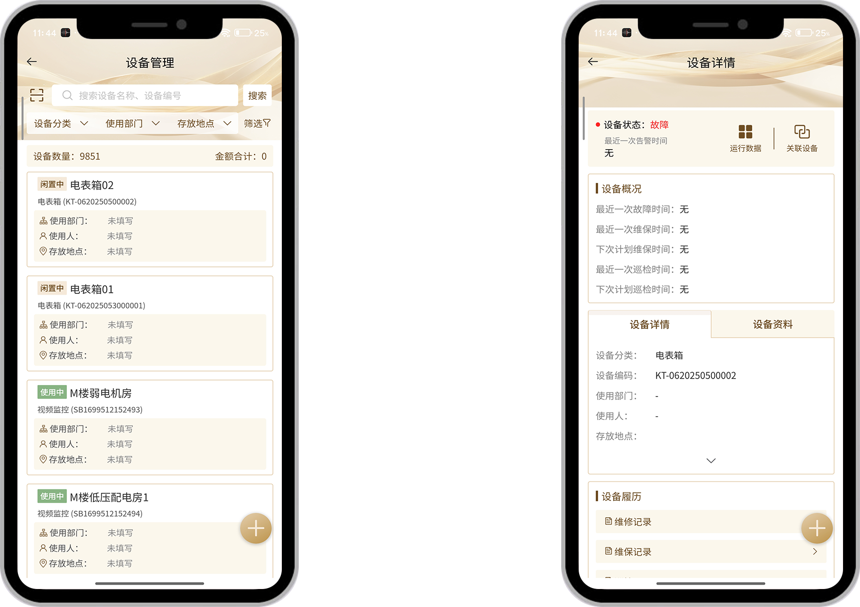 覆盖报修、处理、验收、返修的闭环流程;维保、巡检、设备档案一体化;